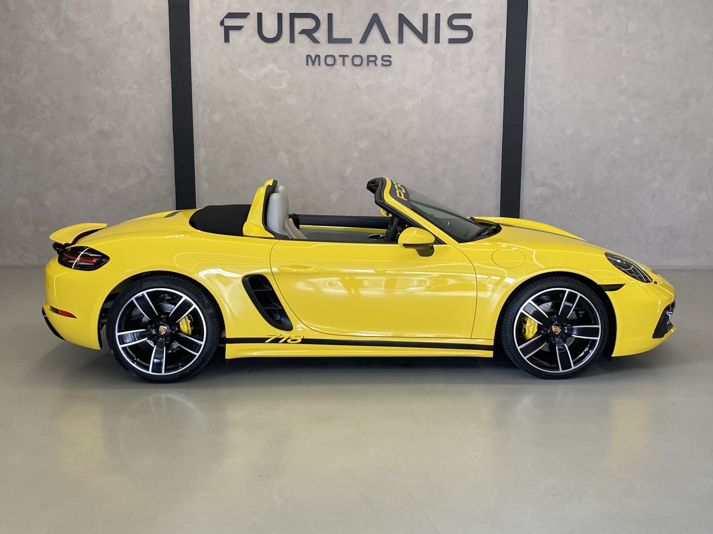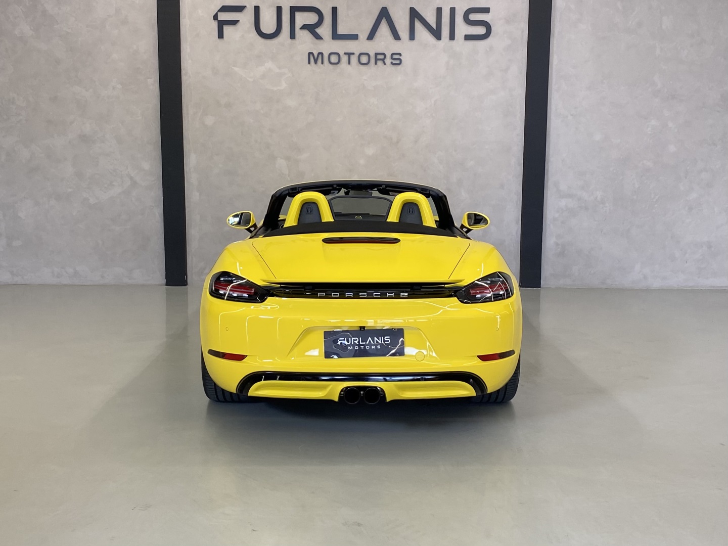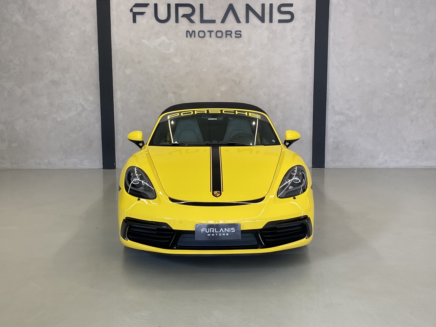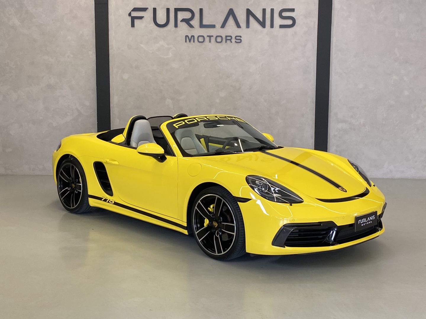 Porsche 718 Boxster – conversível esportivo com tração traseira e excelente desempenho. Equipado com pacotes Sport Chrono e Sport Design, rodas GTS, escape esportivo com saída dupla e sistema de som Bose. Destaque para a personalização visual com testeira Porsche no para-brisa, designação “718” nas portas e faixas pretas no capô. Interior em tom claro, capota elétrica e preparação esportiva com remapeamento e downpipe. Veículo diferenciado, muito bem cuidado e com forte apelo esportivo.
