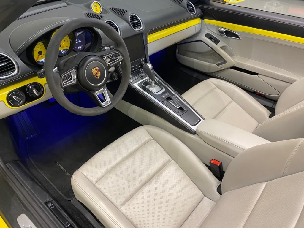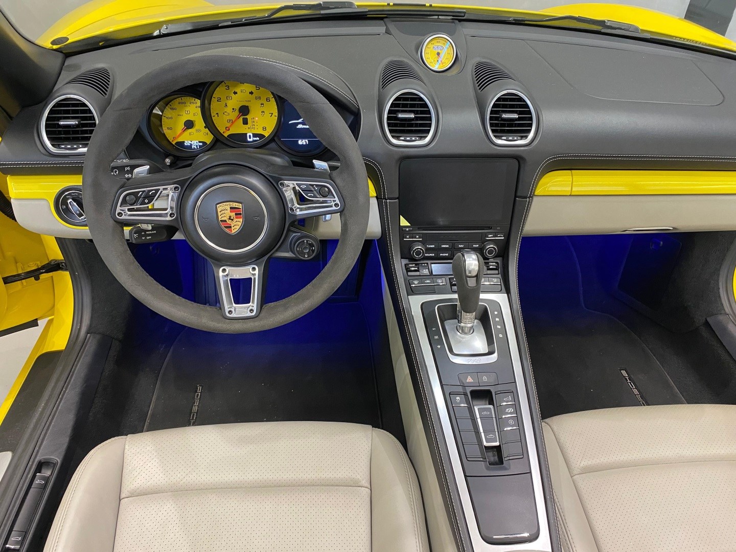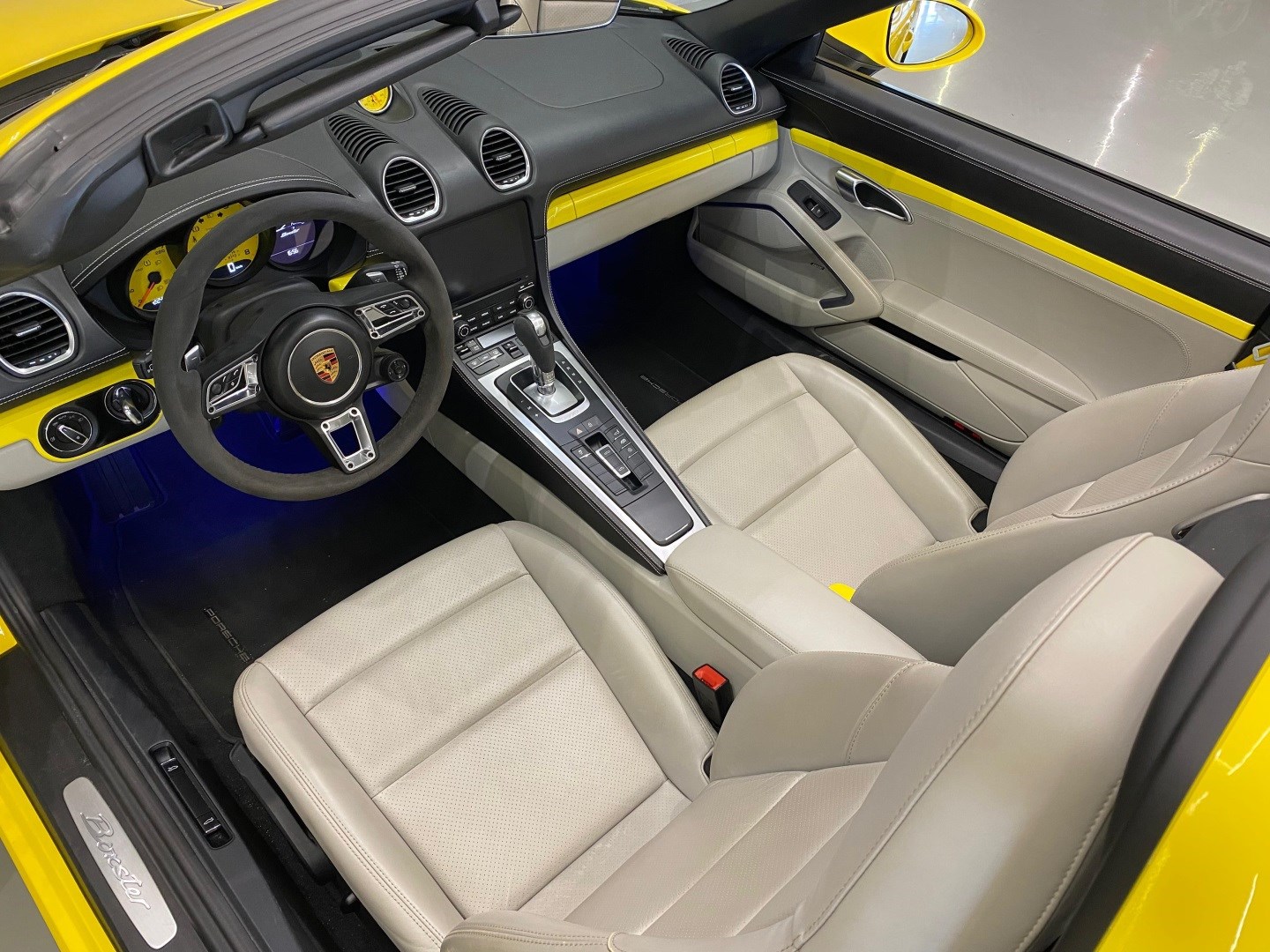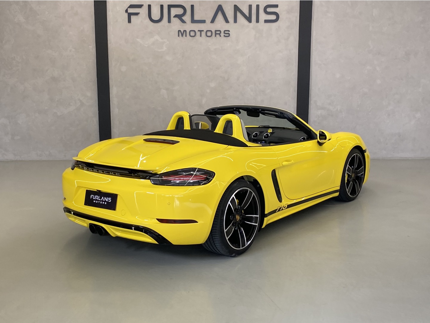 Porsche 718 Boxster – conversível esportivo com tração traseira e excelente desempenho. Equipado com pacotes Sport Chrono e Sport Design, rodas GTS, escape esportivo com saída dupla e sistema de som Bose. Destaque para a personalização visual com testeira Porsche no para-brisa, designação “718” nas portas e faixas pretas no capô. Interior em tom claro, capota elétrica e preparação esportiva com remapeamento e downpipe. Veículo diferenciado, muito bem cuidado e com forte apelo esportivo.