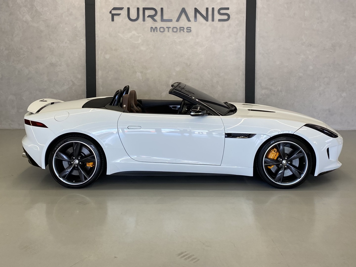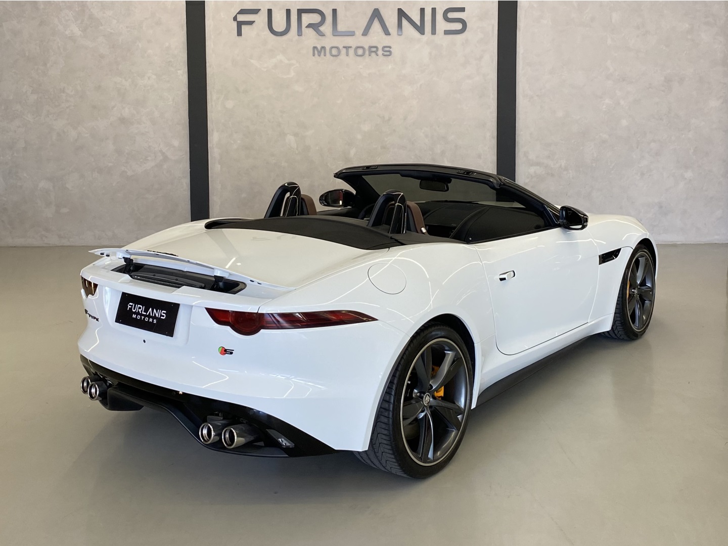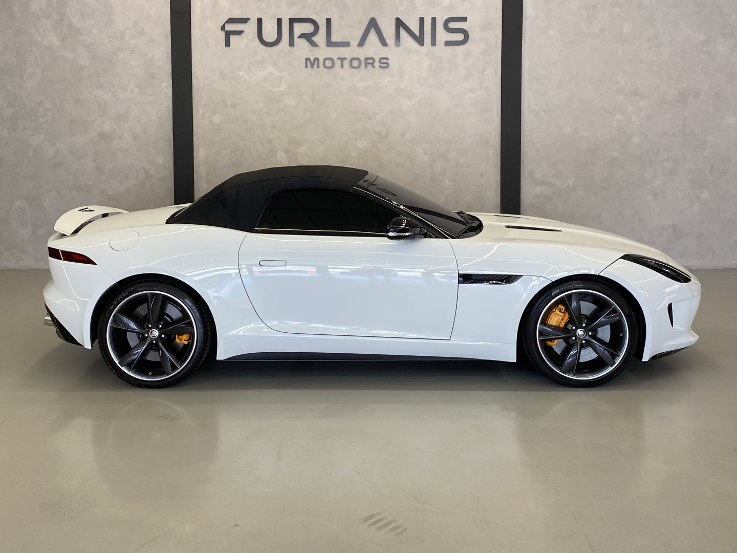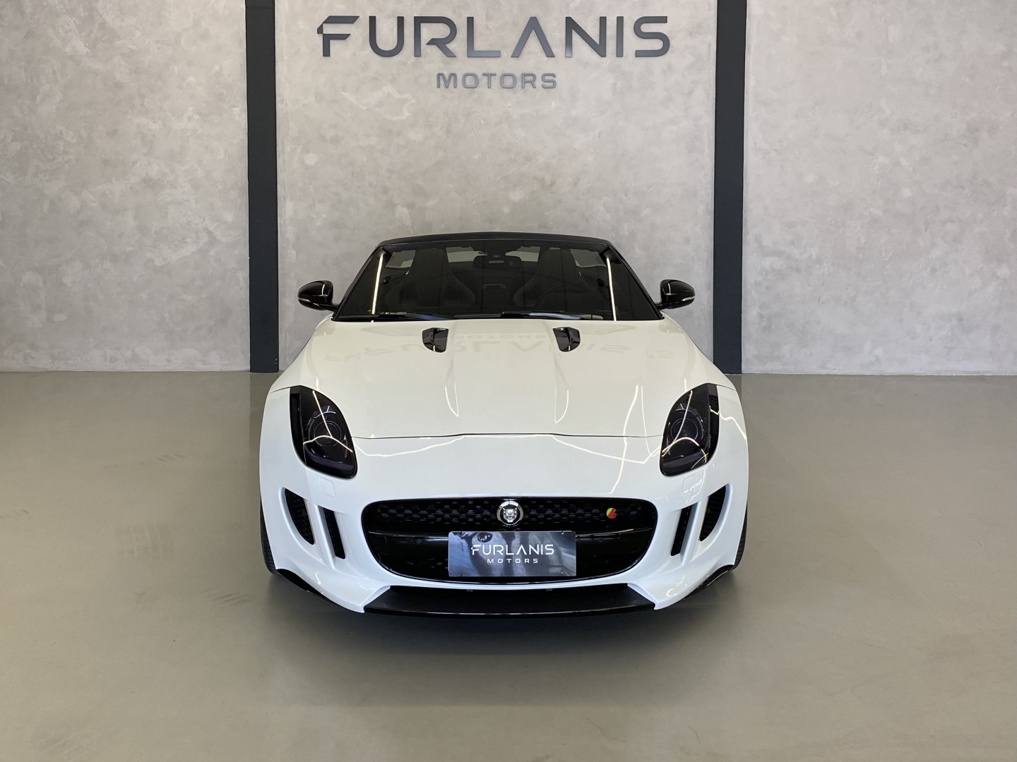 Jaguar F-Type S V8 Supercharged – esportivo conversível de alto desempenho, com motor V8 supercharged, câmbio automático Quickshift e tração traseira. Visual elegante na cor branca, com interior em couro marrom e capota elétrica em tecido preto. Equipado com rodas esportivas com pinças em tom contrastante, escape esportivo com válvula ativa, suspensão com ajuste dinâmico e bancos elétricos com memória. Conta ainda com sistema de som Meridian e central multimídia com conectividade. Veículo extremamente bem cuidado e em excelente estado.