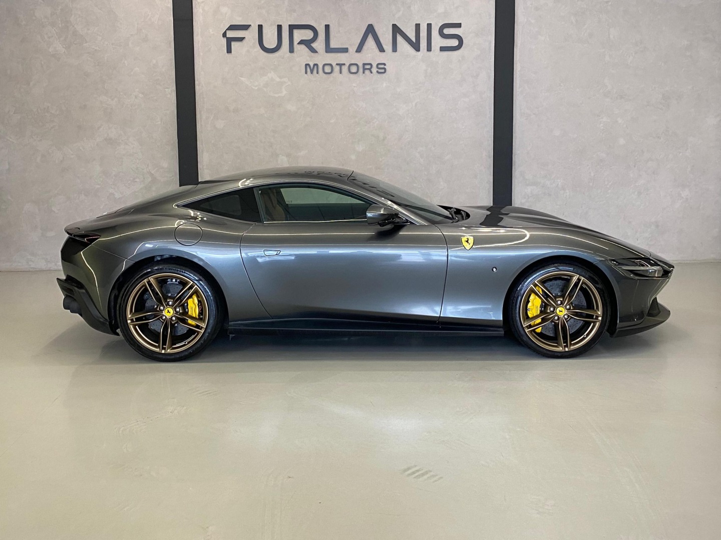 Menor valor Brasil! Ferrari Roma 2024 com apenas 900 km. Cor original Grigio Silverstone (cinza), com as rodas em dourado e as pinças de freio em amarelo. O carro conta com escapamento full titanium, o ronco é um espetáculo! Com interior em couro bege, freios em carbono cerâmica e display para o passageiro, essa unidade está disponível aqui na Furlanis Motors!