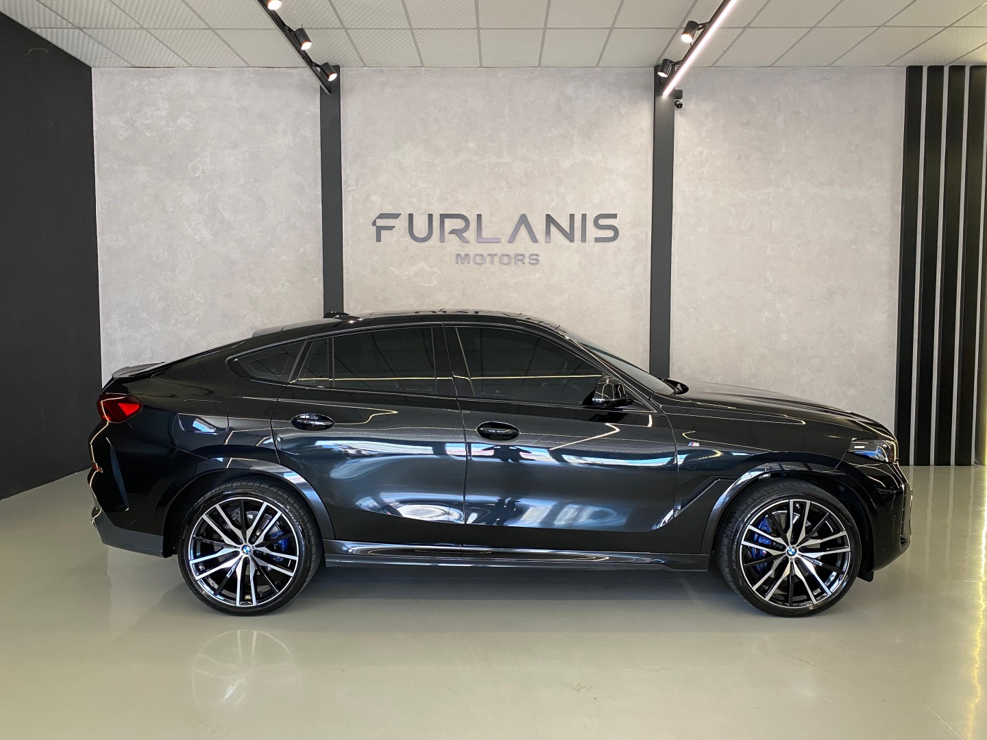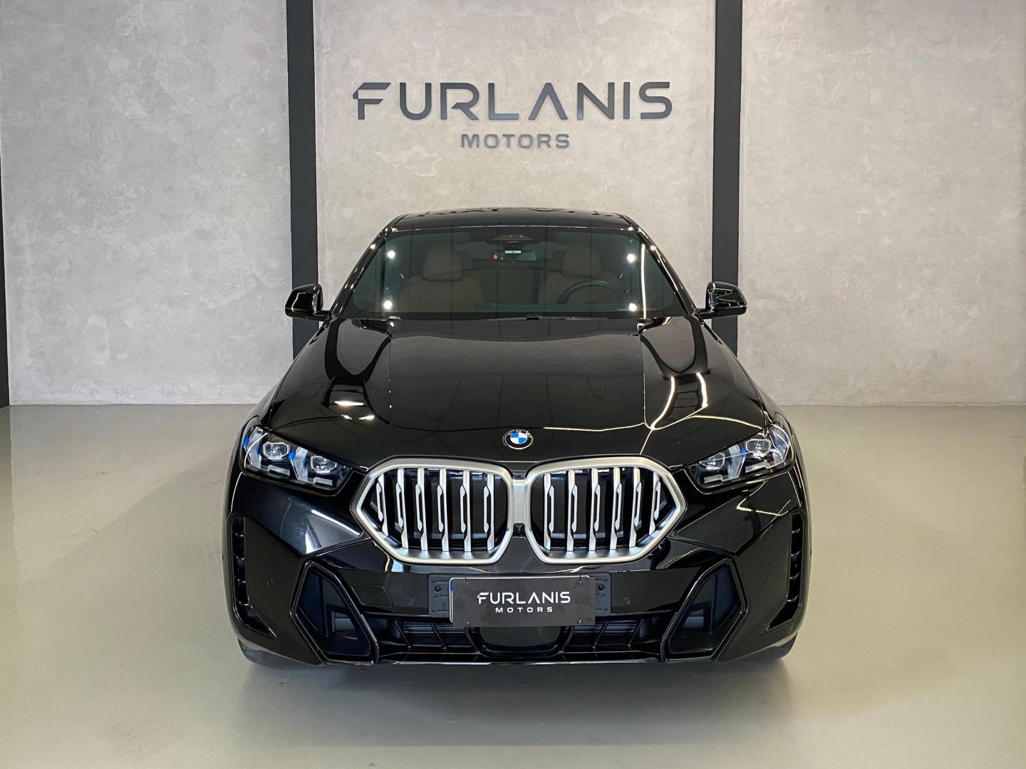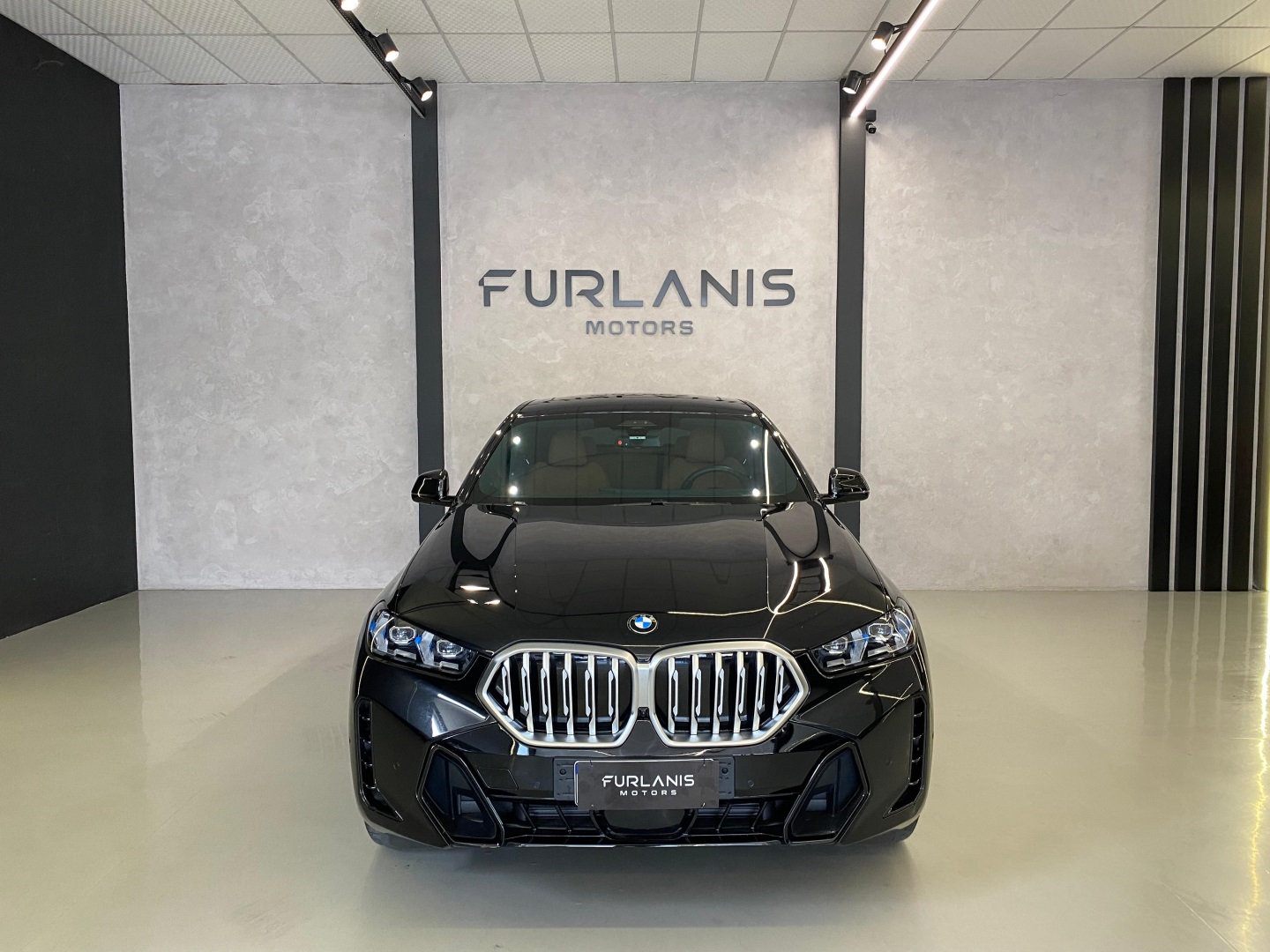 BMW X6 xDrive 40e M Sport 2025 com 11.500 km. Motor 3.0 de 6 cilindros TwinPower Turbo de 381 cv, câmbio automático de 8 marchas e tração traseira sDrive. Preto com pacote M Sport, rodas aro 21 e faróis BMW Iconic Glow em LED. Interior em couro Vernasca preto com bancos ventilados e aquecidos, painel digital curvo, multimídia 8.5 e som Harman Kardon. Disponível na Furlanis Motors