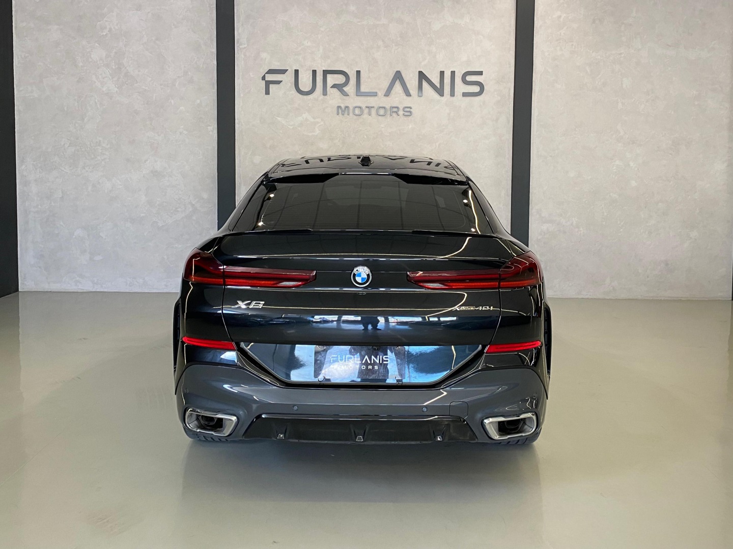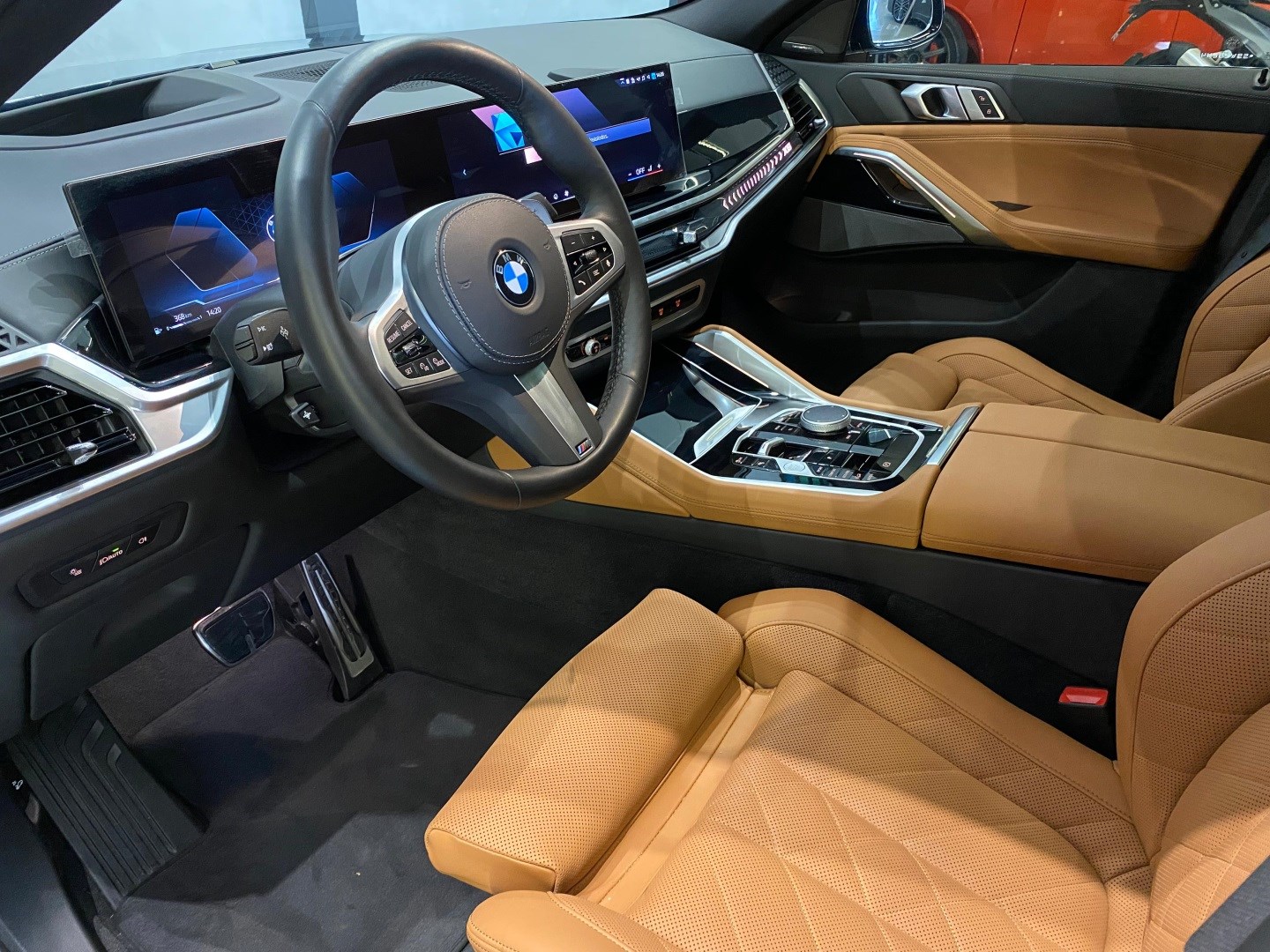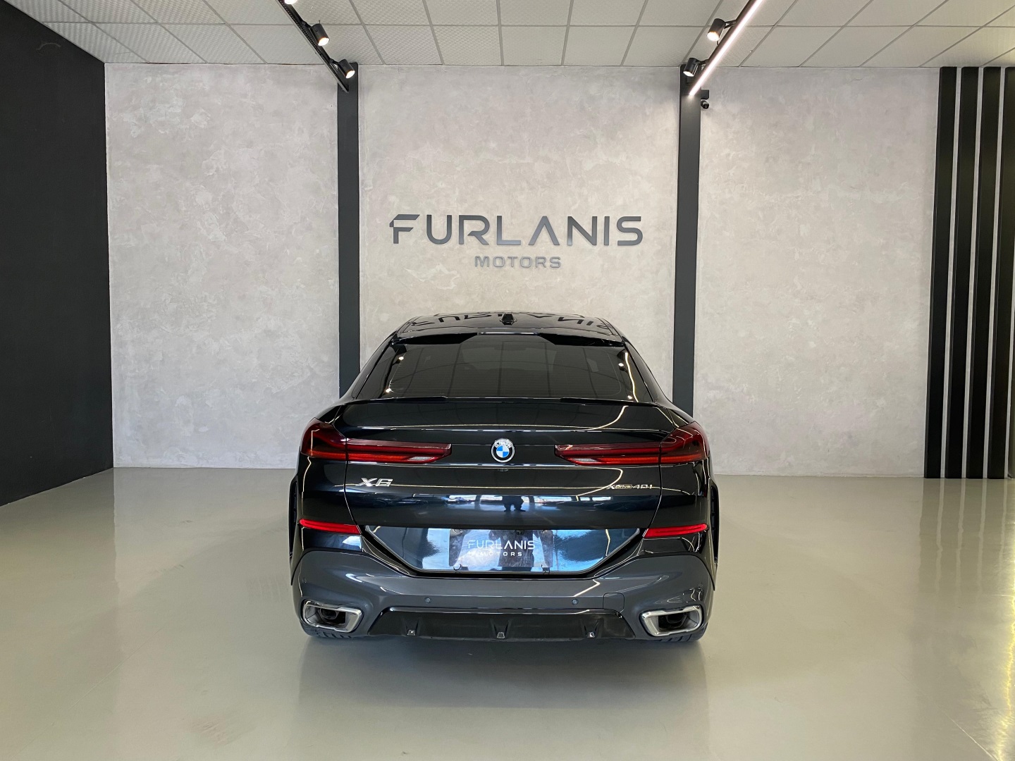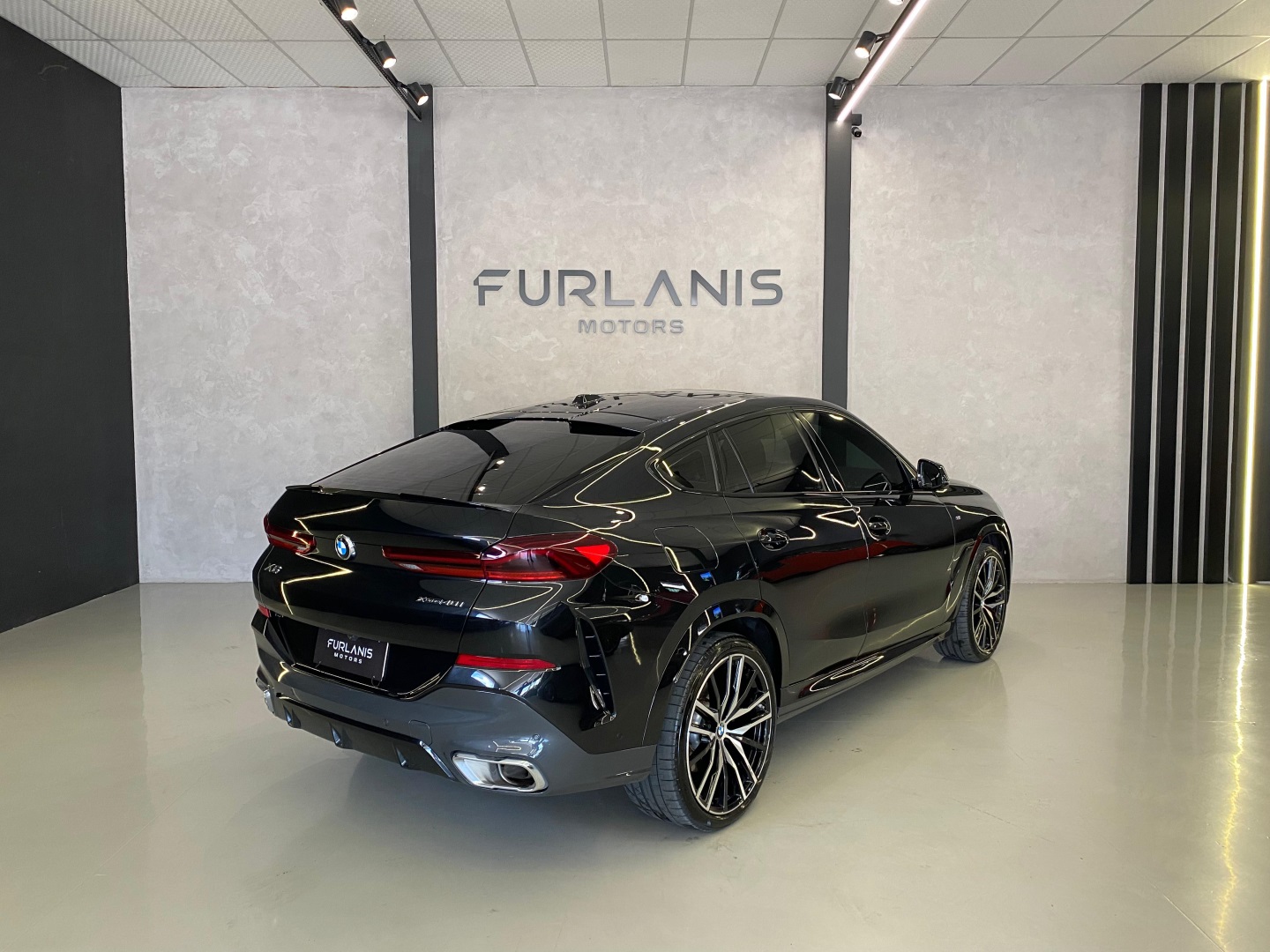 BMW X6 xDrive 40e M Sport 2025 com 11.500 km. Motor 3.0 de 6 cilindros TwinPower Turbo de 381 cv, câmbio automático de 8 marchas e tração traseira sDrive. Preto com pacote M Sport, rodas aro 21 e faróis BMW Iconic Glow em LED. Interior em couro Vernasca preto com bancos ventilados e aquecidos, painel digital curvo, multimídia 8.5 e som Harman Kardon. Disponível na Furlanis Motors