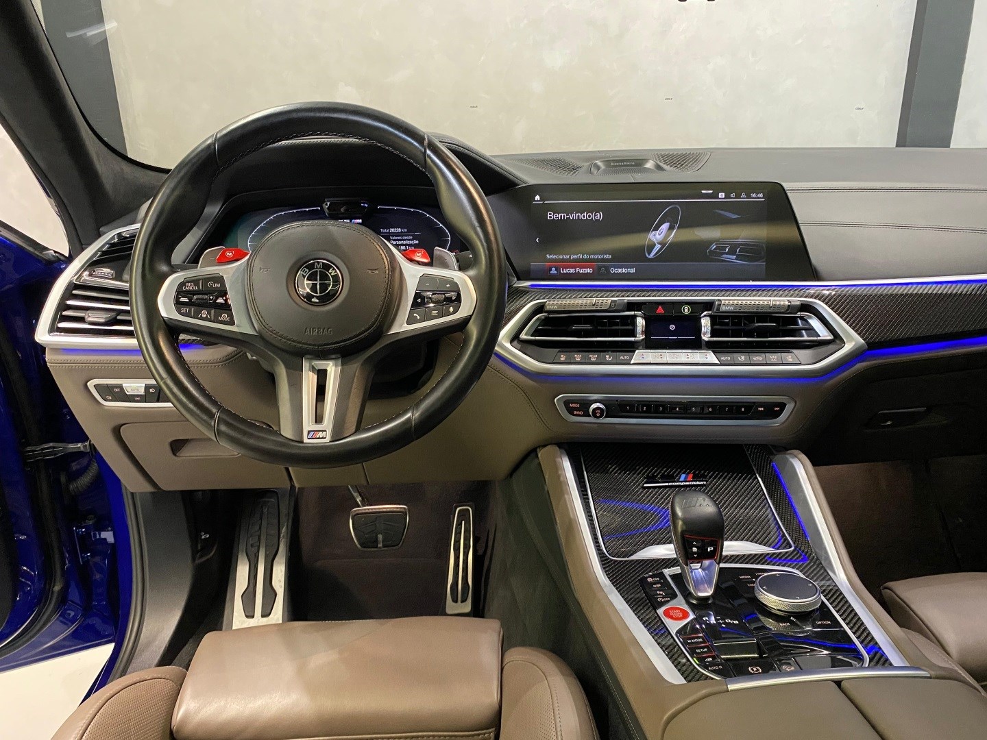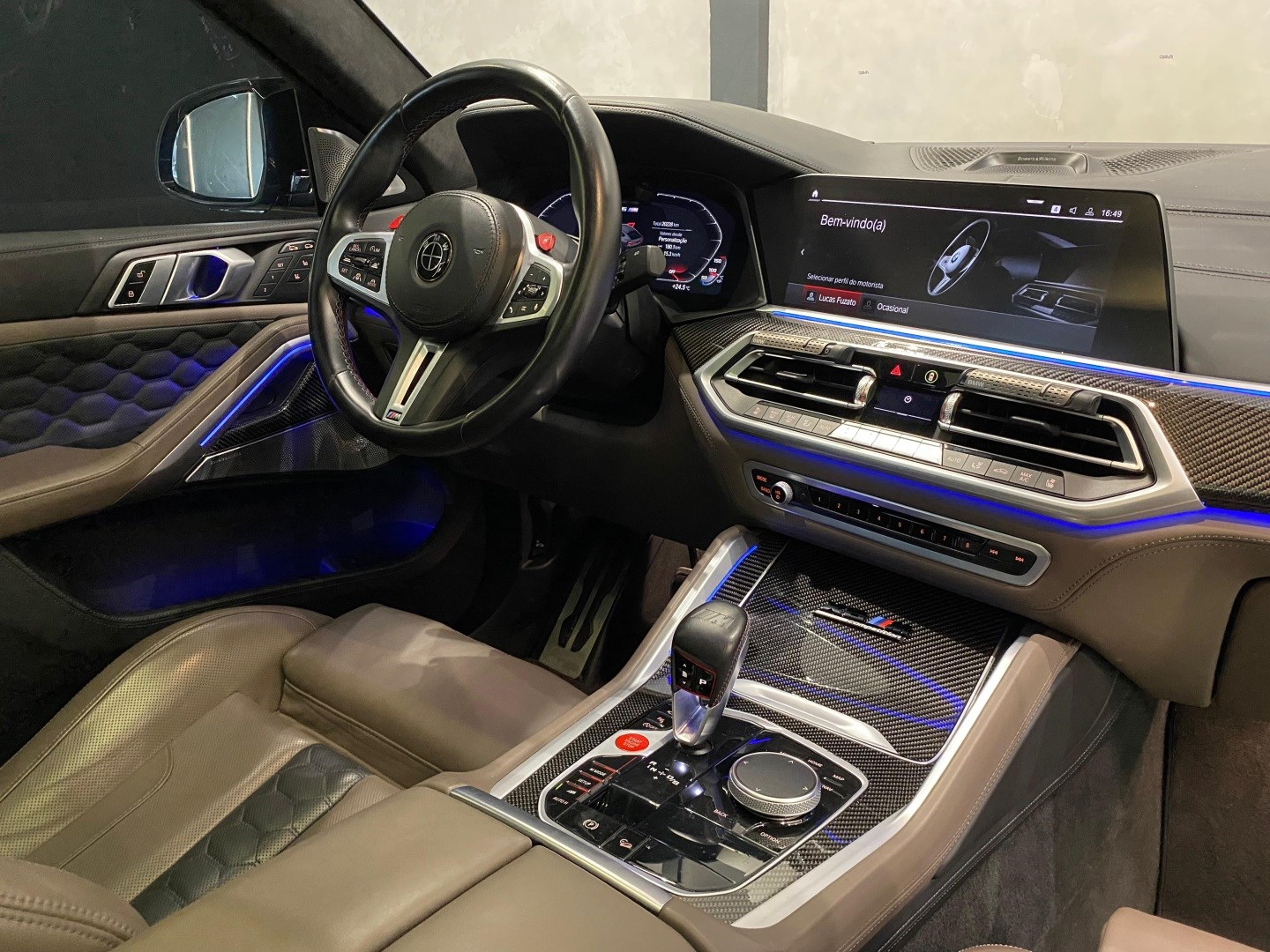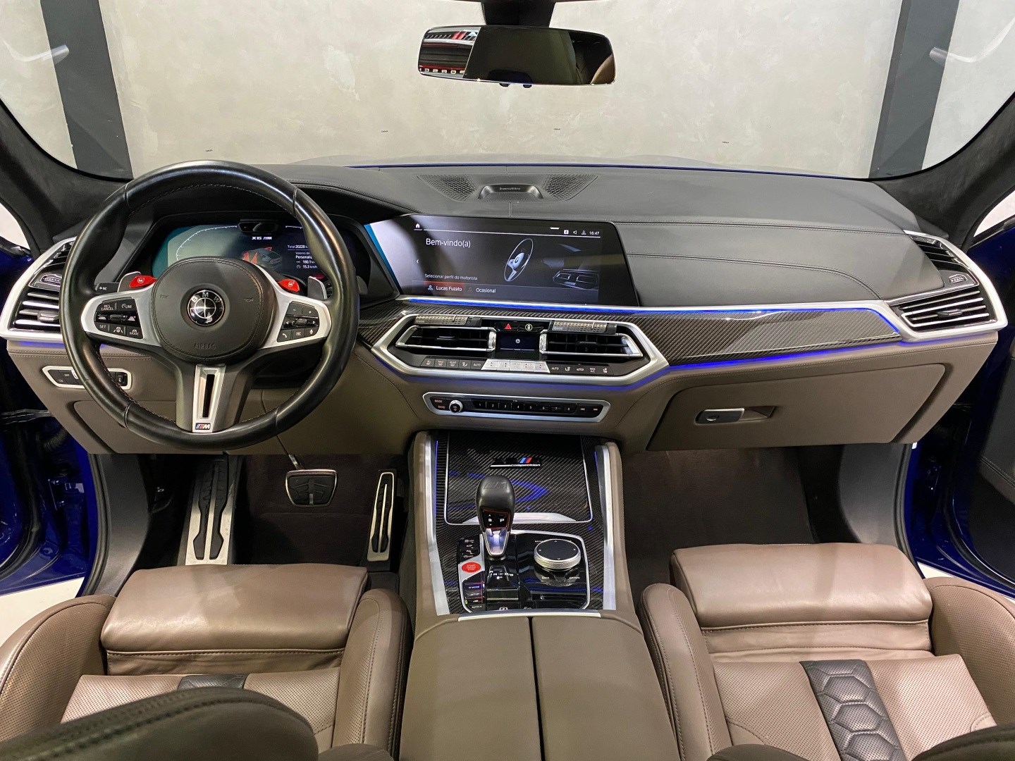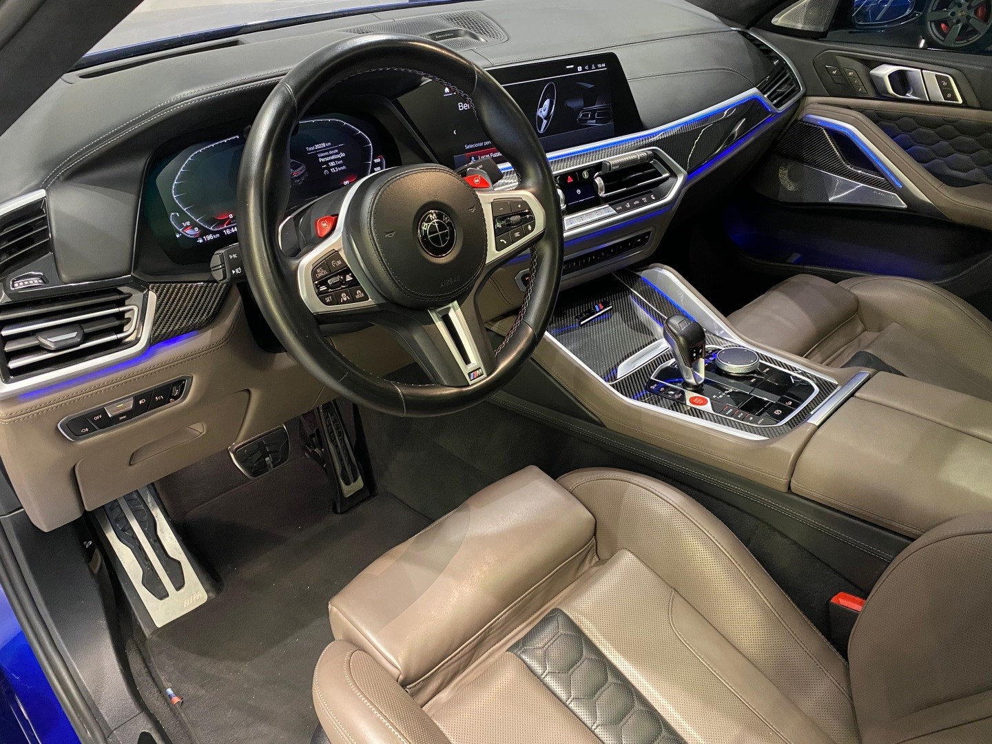 BMW X6 M Competition 2023 – V8 Biturbo com mais de 800hp, ECU desbloqueada na Finlândia e remap Stage 2 (investimento de ~R$ 60 mil). Azul Navarro com PPF full e detalhes em black piano. Apenas 20.300 km. Rodas originais aro 21 e sistema de som Bowers & Wilkins. SUV esportiva de altíssima performance, potência extrema e acabamento impecável.